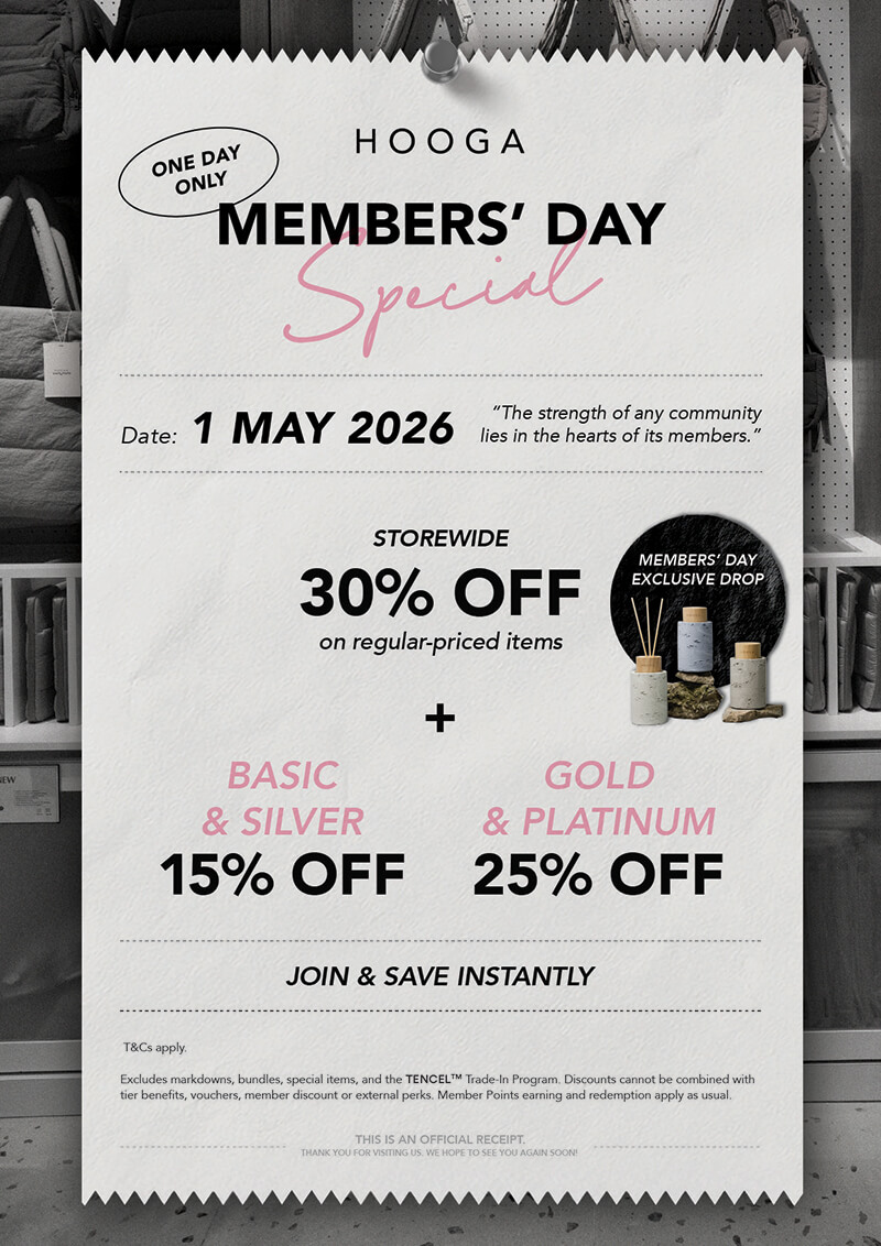Here’s what we’ve set aside for you on Members’ Day. To begin, enjoy 30% off storewide, with an extra 25% off for members in Malaysia / tiered member savings of up to 25% off in Singapore.