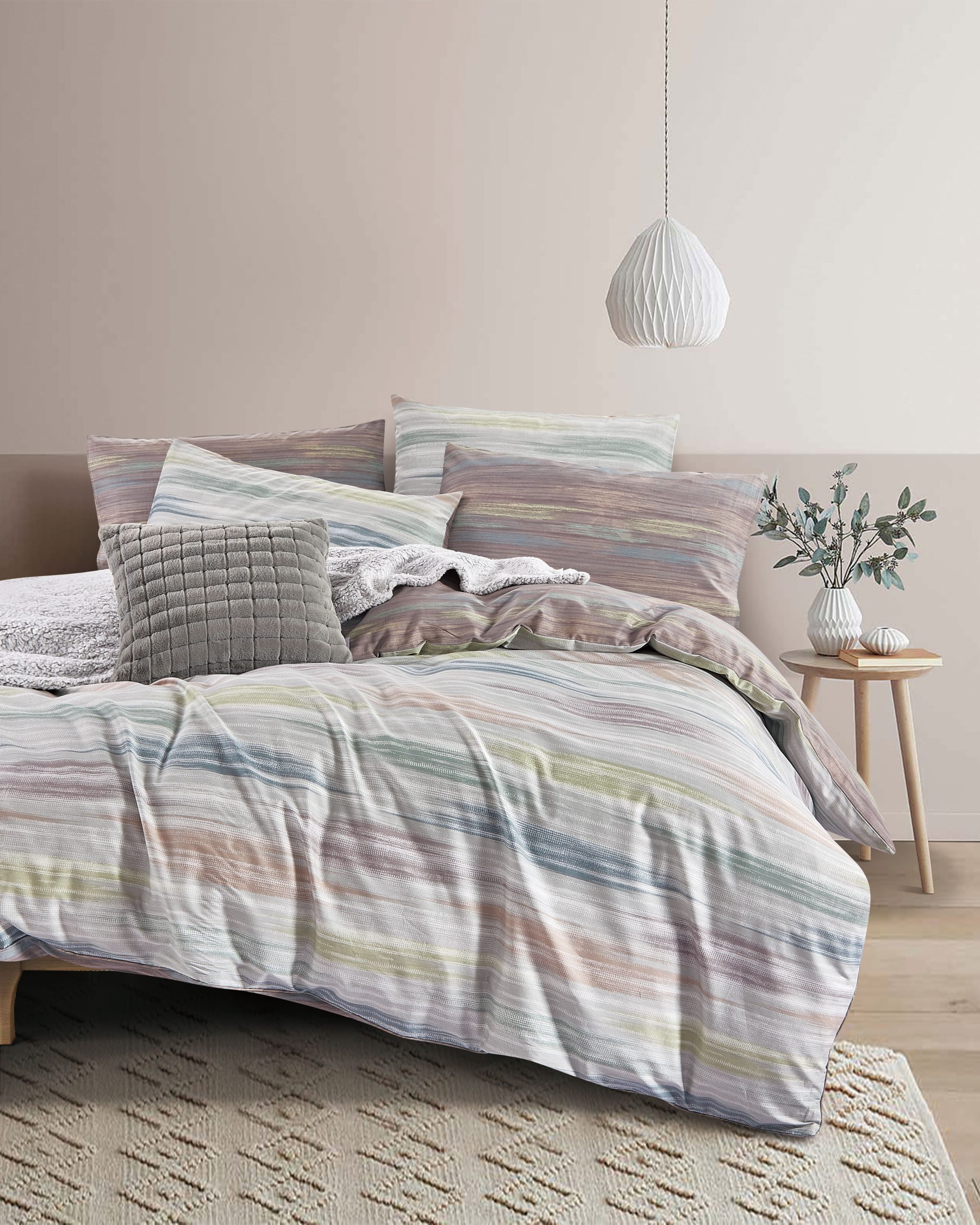 | Size | Fitted Sheet: Single: L 91cm x W 190cm + H 43cm Super Single: L 107cm x W 190cm + H 43cm Queen: L 153cm x W 190cm + H 43cm King: L 183cm x W 190cm + H 43cm Quilt Cover: Single: L 140cm x W 210cm Super Single: L 140cm x W 210cm Queen: L 210cm x W 210cm King: L 247cm x W 210cm Pillow Case: L 51cm x W 76cm Bolster Case: L 38cm x W 107cm |